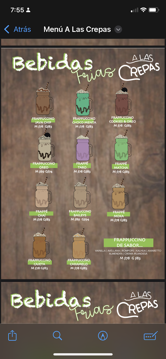 The atmosphere is warm and inviting, complemented by excellent service, making every visit feel special. With affordable prices, A Las Crepas ensures that exceptional taste doesn't come at a steep cost. Don’t forget to pair your meal with a refreshing Smoothie Zarzamora or a rich Frappuccino to round off the experience. Whether you’re a local or just passing through, this spot is not to be missed!